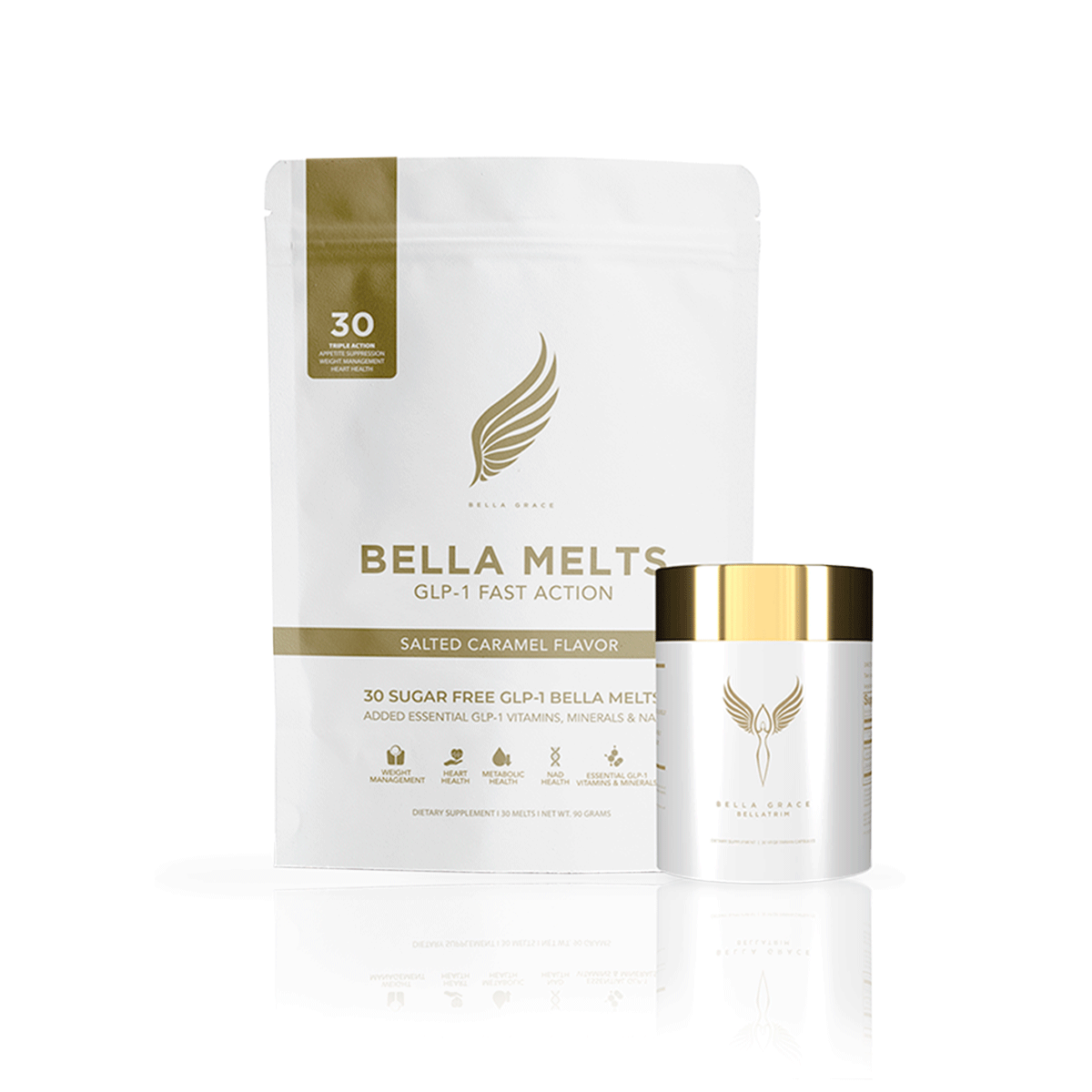 Questo stack attiva naturalmente la produzione di GLP-1 da parte dell'organismo senza aghi o effetti collaterali aggressivi. Insieme, Bella Melts e BellaTrim favoriscono un approccio più intelligente e sostenibile alla gestione del peso, calmando le voglie, riducendo gli ormoni dello stress e sostenendo la salute metabolica.